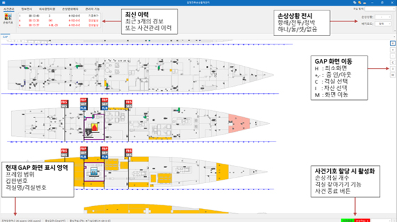 • 다양한 기능을 활용해 함정 손상통제 전반에 걸쳐 지휘 통제 및 통신 능력, 손상 통제 실행 능력을 제고하는 소프트웨어로, 손상 상황에 대비하여 함정의 생존성 향상에 기여